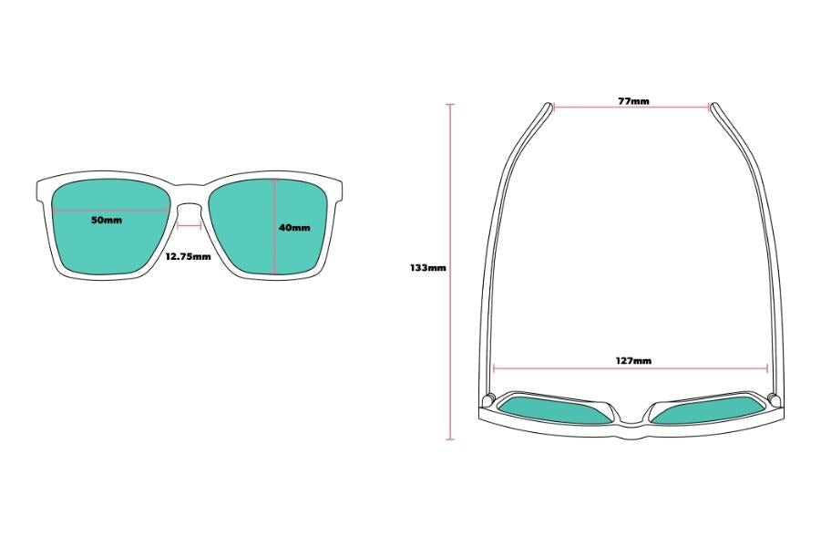 These small teal sunglasses with polarized pink reflective mirrored lenses are just one of the many perks of being fun-sized. No slip, slim-fit active shades.