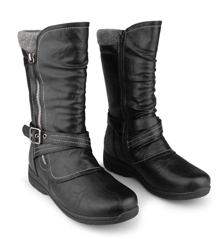 The Romika Ladies Eleanor 03 reimagines the classic Chelsea boot with a playful plaid twist. Made from smooth black vegan leather with black, grey, and red plaid accents, this waterproof boot blends style, comfort, and functionality—ideal for fall and mild winter wear.